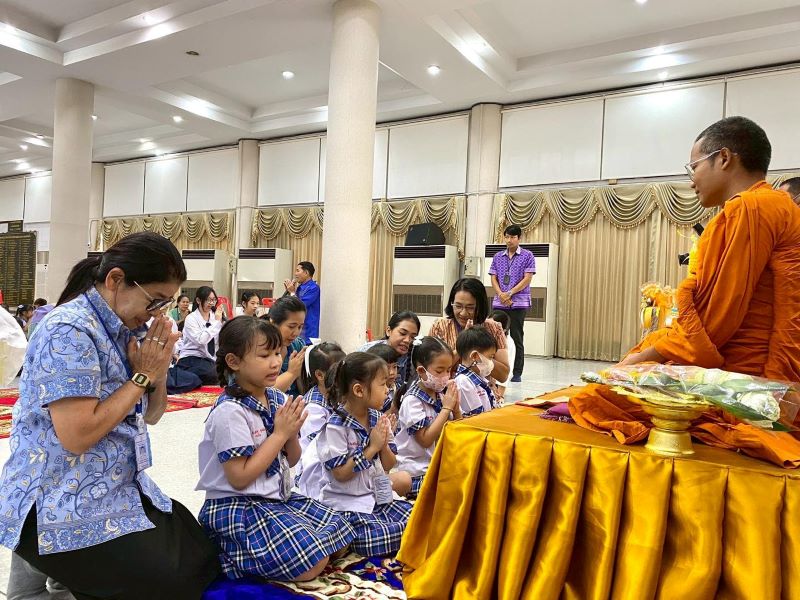 เข้าร่วมกิจกรรม โดยทางโรงเรียนได้นิมนต์พระอาจารย์มาบรรยายธรรมที่ห้องประชุมโรงเรียน คณะผู้บริหาร ครู และนักเรียนร่วมกันถวายเทียนพรรษา เครื่องไทยธรรม พร้อมจตุปัจจัย